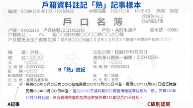 二、有關戶籍資料註記「熟」記事簡要說明: