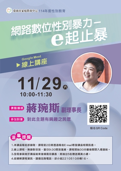 二、為提升民眾e世代數位素養及性別暴力防制觀念,特舉辦旨揭線上講座。